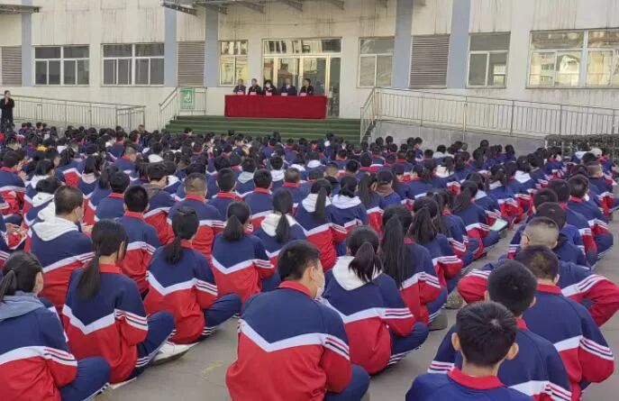 在张家庄中学,参与法治进校园活动的全体师生在“童心向党 德风法语润我成长”的条幅上签名,学生代表领誓,励志争做遵纪守法好少年,涵养进取品格,练就强大报国本领。