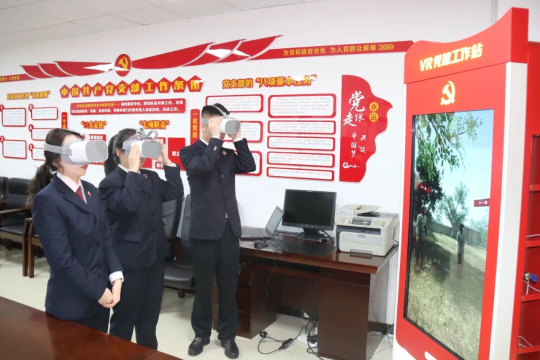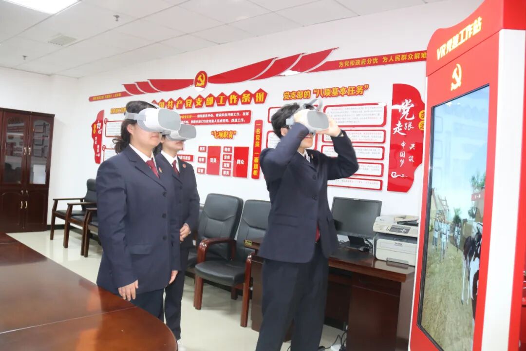 在VR党建工作站,干警们重点体验了《平型关大捷》《飞夺泸定桥》《渡江战役》《红军过草地》《长征雪山》等革命战争篇章,借助VR虚拟仿真技术,进入场景模式,或英勇冲锋陷阵、或穿梭枪林弹雨、或跋涉雪山草地、或舍身慷慨就义,一幕幕历史真实演绎,革命先驱用生命谱写出一曲曲荡气回肠的英雄赞歌。