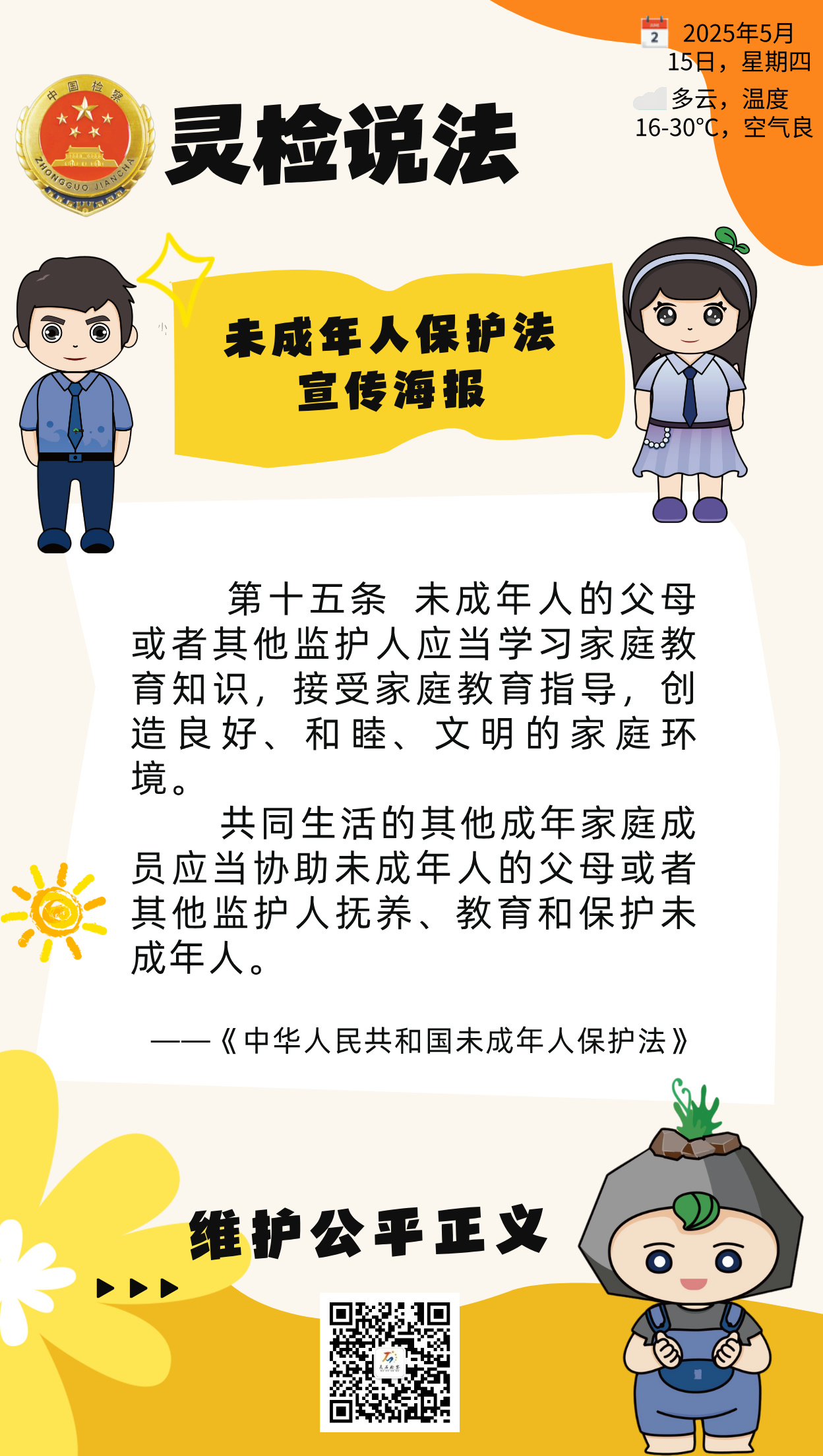 【灵检说法】《中华人民共和国未成年人保护法》宣传海报